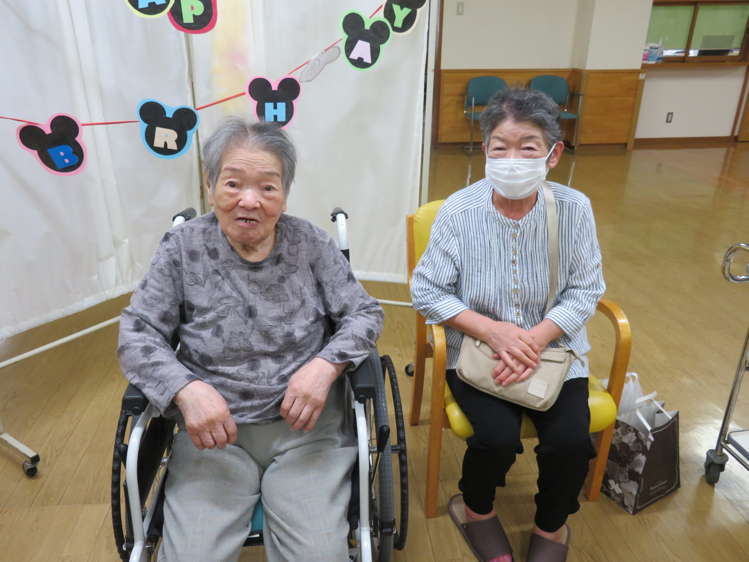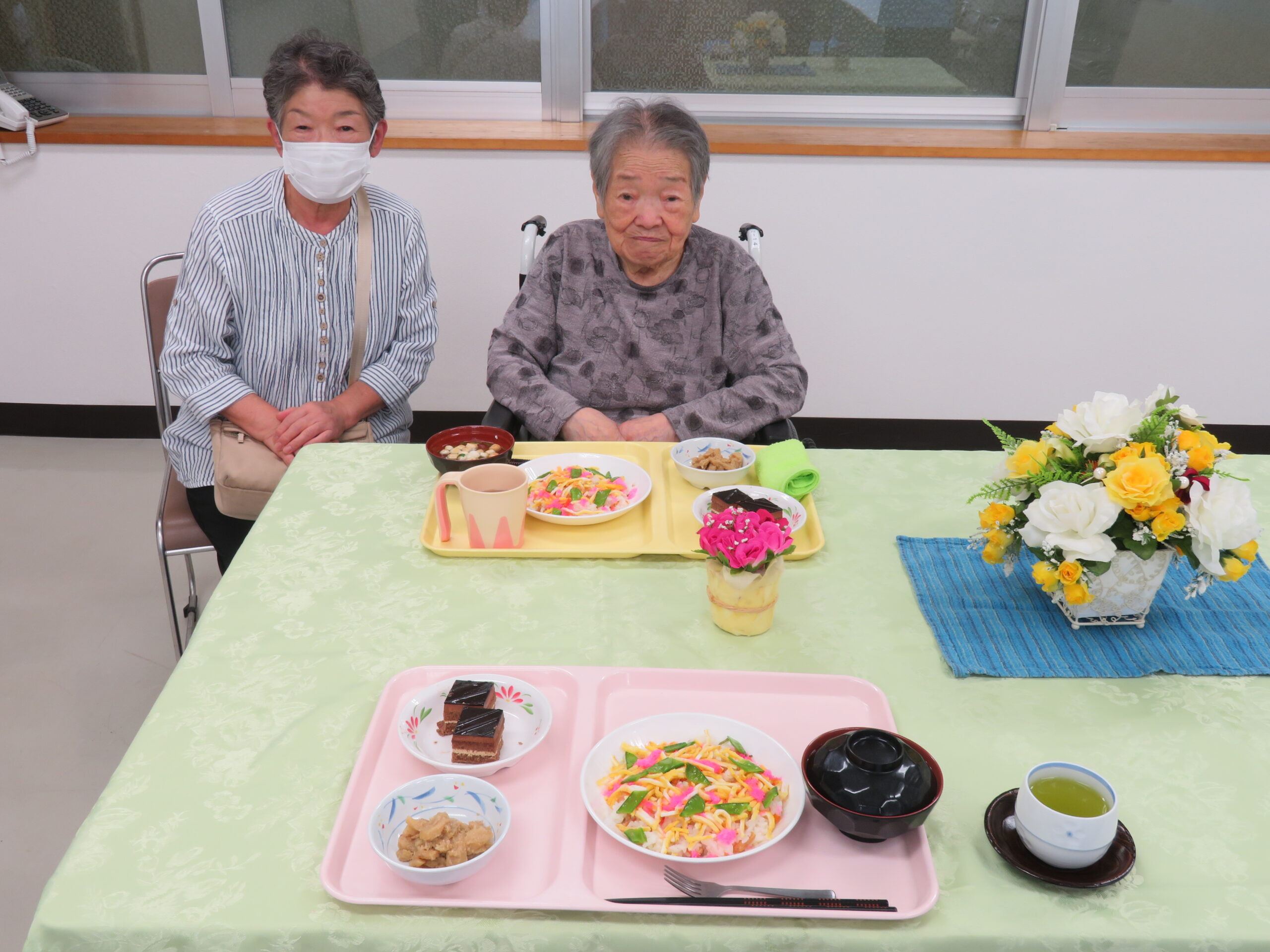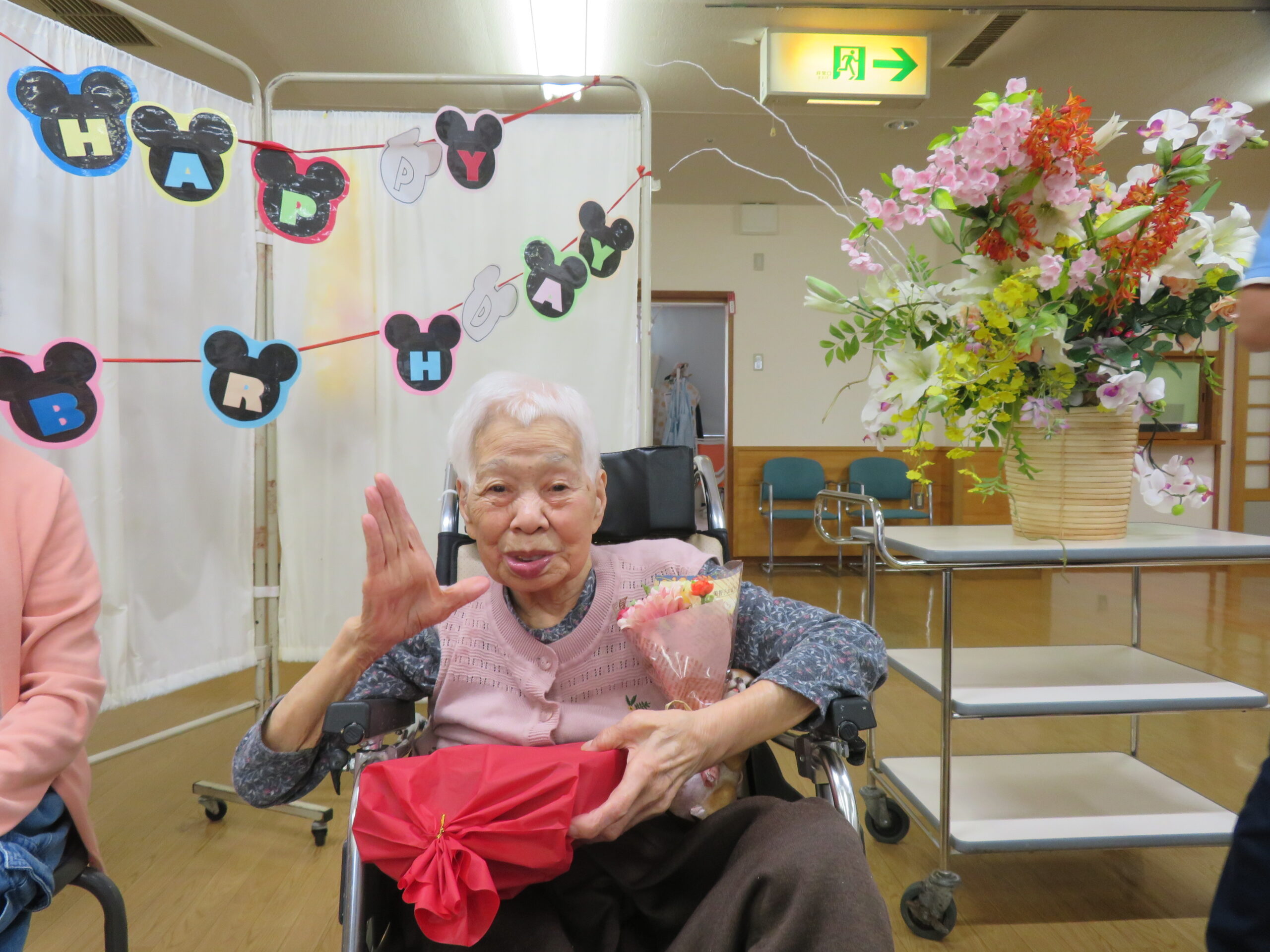 2025.09.30 更新 【寿楽荘】誕生会 9月29日 会津寿楽荘では2名の方が誕生日を迎えられ、誕生会を開催しました。 利用者の皆さん、ご家族様、職員でお祝いし、ご家族様と居室担当者からはプレゼントが贈られました。 平山美智子さん 93歳! 猪俣ヨシさん 101歳! 誕生会の後は、ご家族様と一緒に食事会。 ちらし寿司とチョコレートケーキの特別メニューです♪ 見た目も華やかで、お二人とも「美味しいなぁ」と大変喜ばれておりました。 平山美智子さん、猪俣ヨシさん お誕生日おめでとうございます! これからも末永くお元気でお過ごしください。 前へ