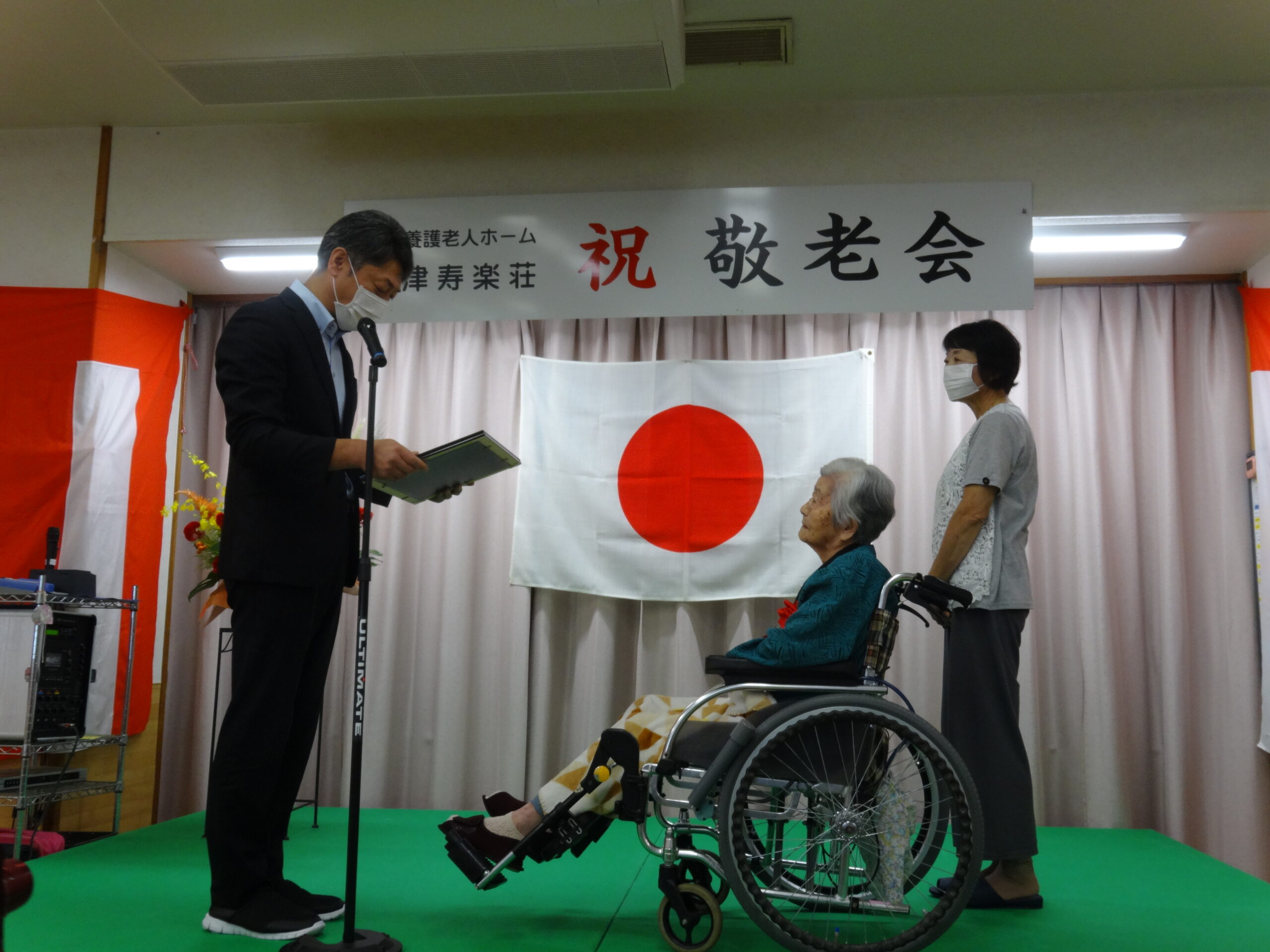 2025.09.25 更新 【寿楽荘】敬老会を開催しました! 9月24日、ご長寿をお祝いする表彰式では 喜寿・米寿・卒寿・白寿・百寿・百一賀・百三賀・百四賀 12名のご利用者様に賞状と記念品を贈呈いたしました。 賞状を手にされた利用者様の笑顔や感極まって涙する姿がとても印象的でした。 表彰式後は、二胡アンサンブル様による演奏とお祝い御膳を楽しんでいただきました。 前へ 次へ