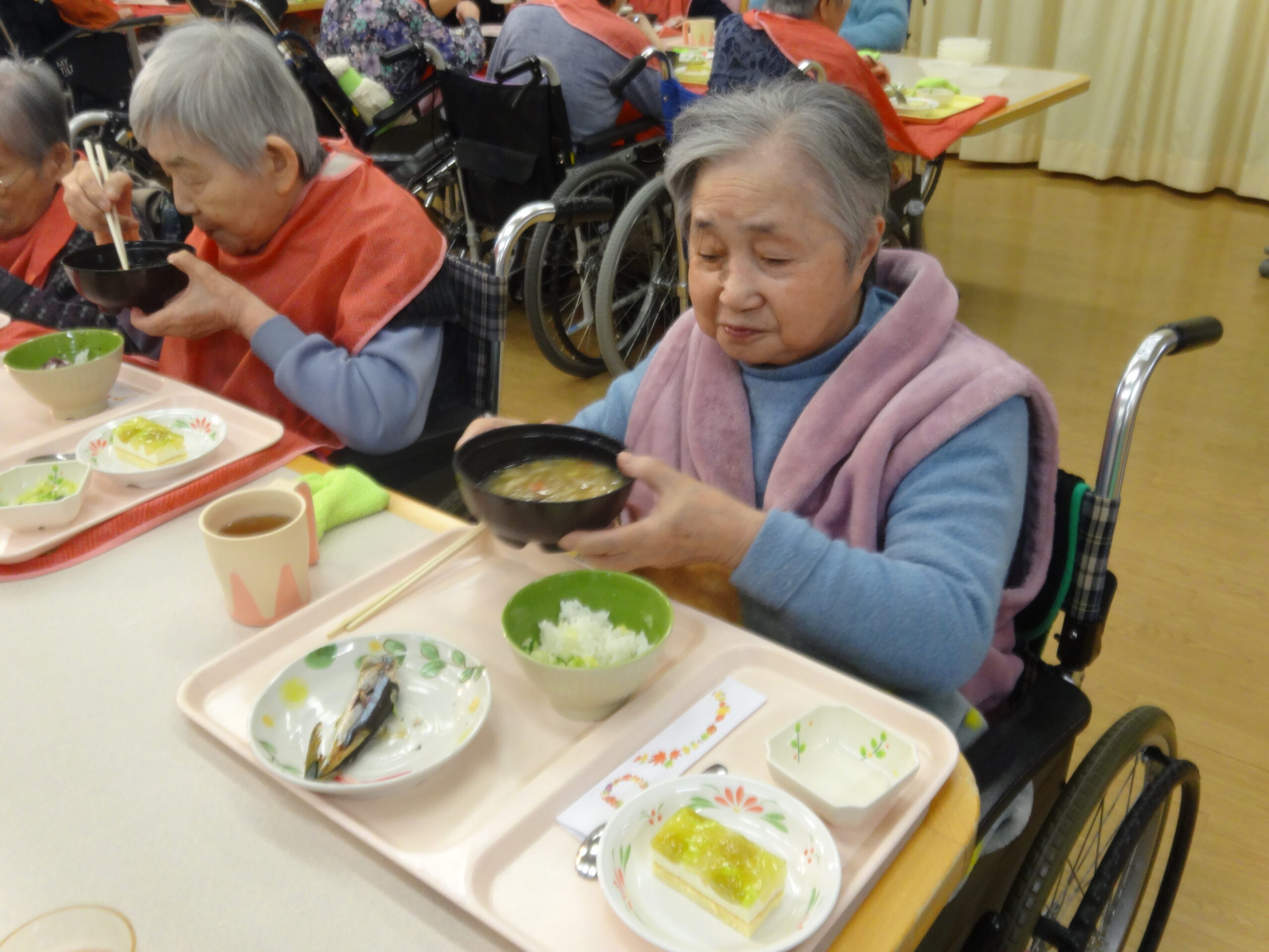 秋の香りいっぱいのご飯に、利用者のみなさまの笑顔がこぼれていました😊